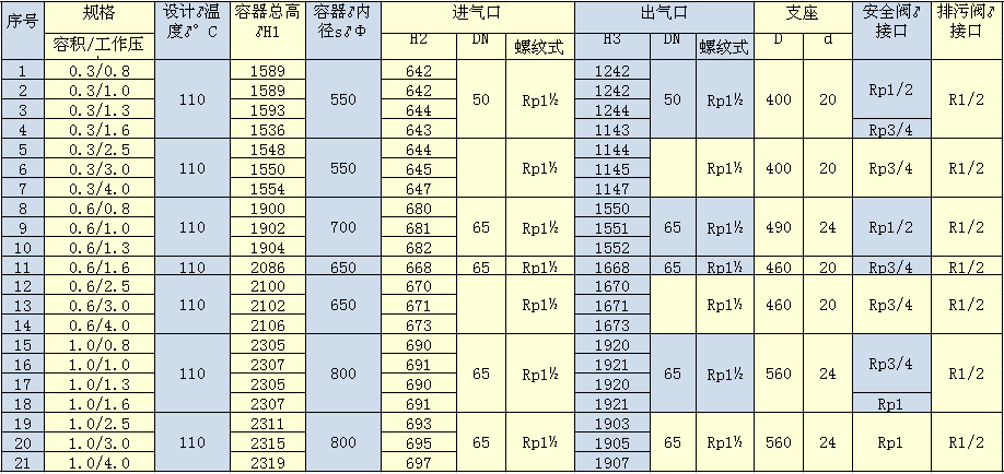 是專門用于儲存壓縮空氣的壓力容器,主要用于存氣緩沖,同時起穩(wěn)定系統(tǒng)壓力的作用,避免空壓機頻繁加卸載和除掉大部分的液態(tài)水,主要與壓縮機、冷凍式干燥機、過濾器等設備配套使用,組成工業(yè)生產上的動力源壓縮空氣站。